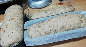 Una vez que ya haya levado desgasificamos la masa sacándola de nuevo a la mesa y amasándola, ponemos en un molde donde vayamos a hacer los panes, papel de horno para que no se peque la masa al molde. Cortamos en el número de barritas a hacer ya amasamos harta dejar un churro, ponemos en el molde y volvemos a dejar levar hasta que duplique su tamaño.